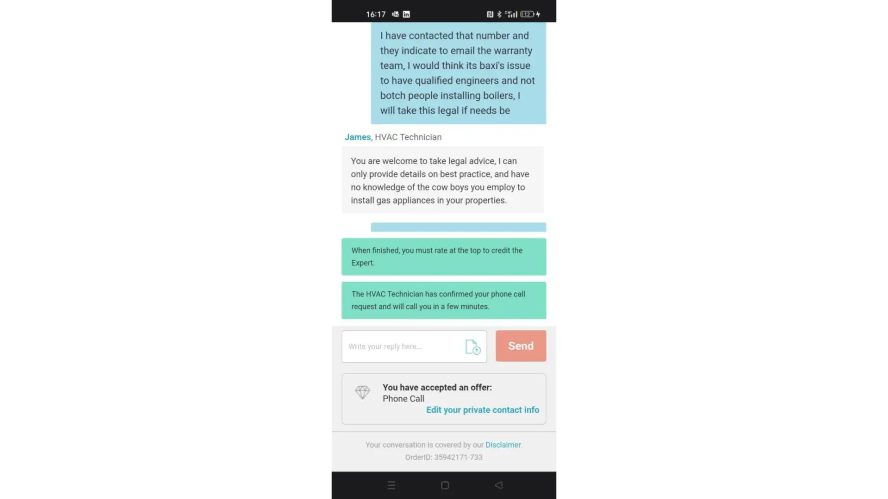 I have contacted that number and they indicate to email the warranty team, I would think its baxi's issue to have qualified engineers and not botch people installing boilers, I will take this legal if needs be