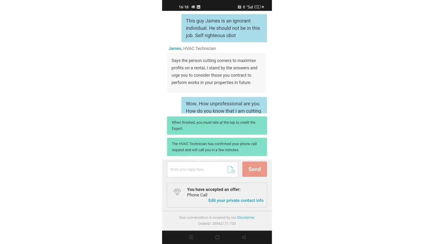 I was then put in contact with a guy called James and had a verbal communication with him , he instructed me to inspect certain aspects of the complaint in question and we then finished the call.