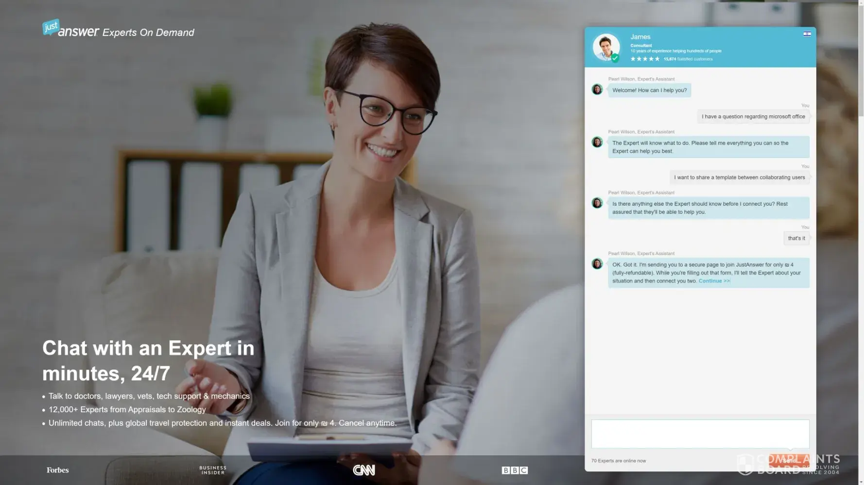 JustAnswer claims to have qualified and experienced experts available to answer users' questions and provide advice.
