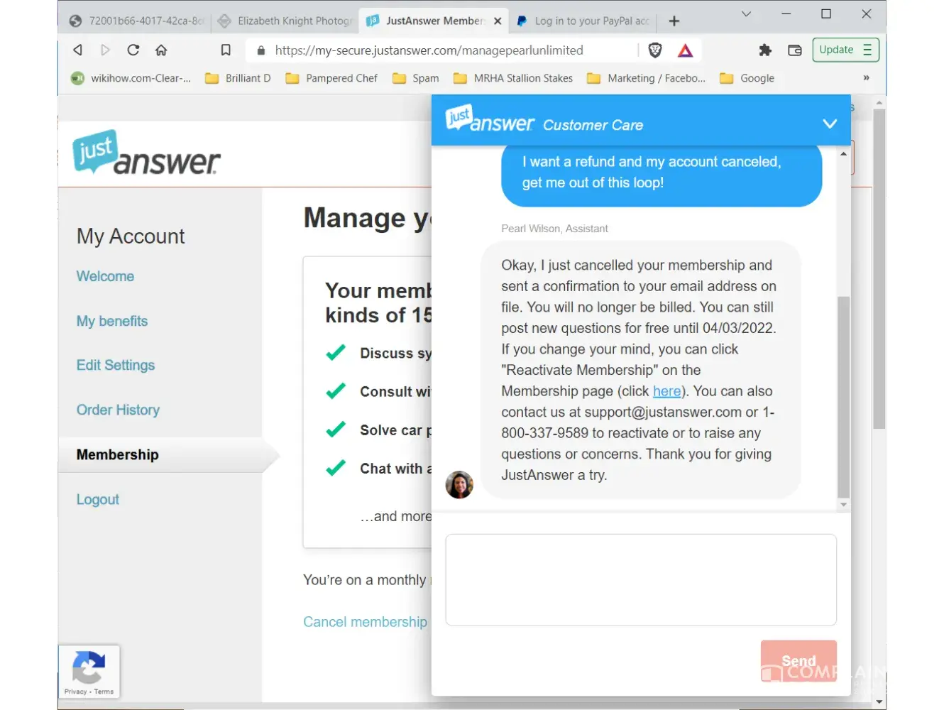 JustAnswer Membership fee not refunded