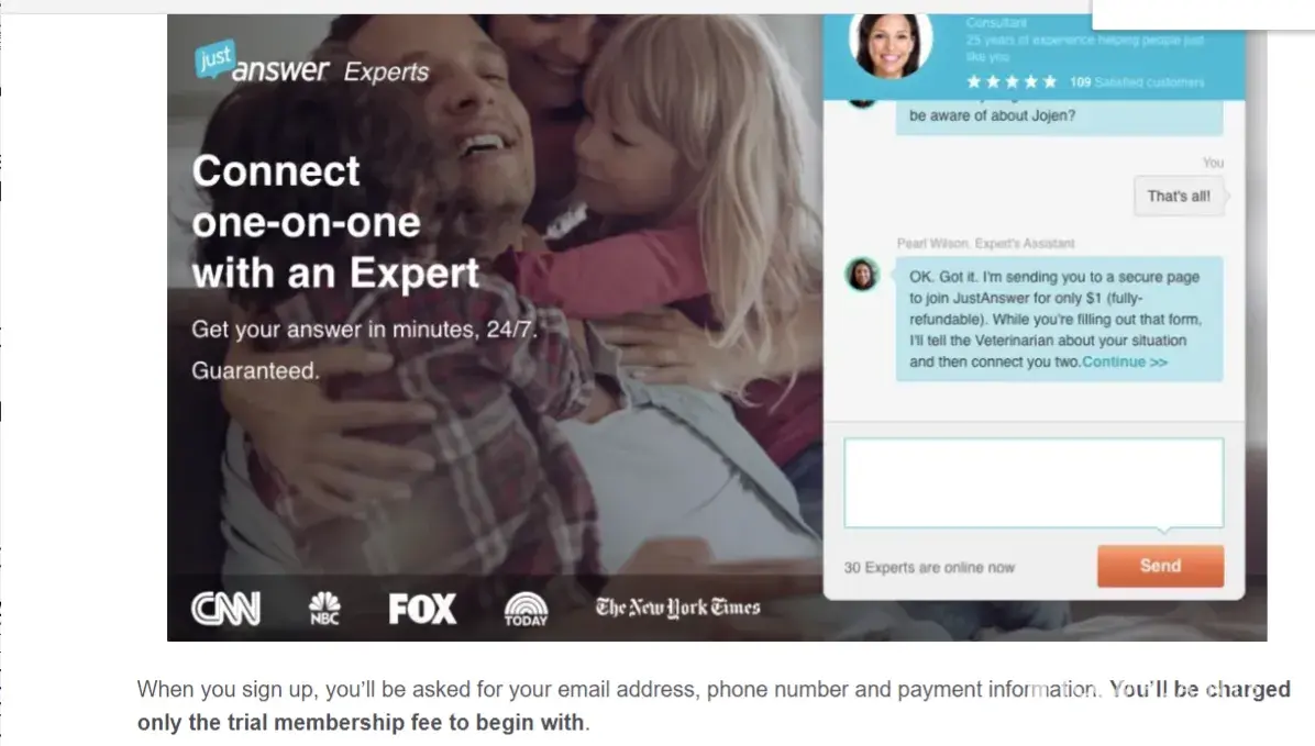 JustAnswer claims to have qualified and experienced experts available to answer users' questions and provide advice.