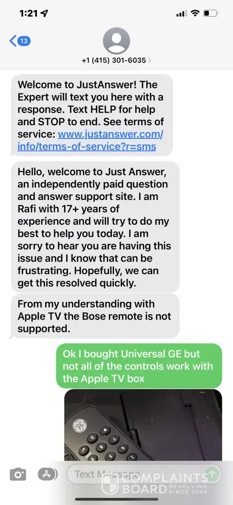 In Oct 2021 I used JustAnswer for a question regarding a fridge. Before I even got to ask anything I was required to fill in my credit card info. Immediately I got charged $1; no explanation why. I assumed it was to verify the credit card and would get that $1 refunded or deducted from my overall cost.