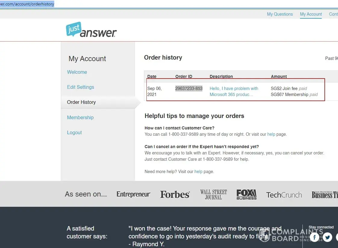 I was refused a refund after I was charged $34 for a $5 trial membership to Just Answer