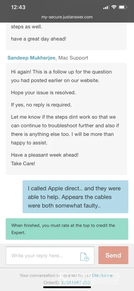 The "expert" who was online with me was Sandeep Mukherjee ( stated to be a Mac Support Specialist.