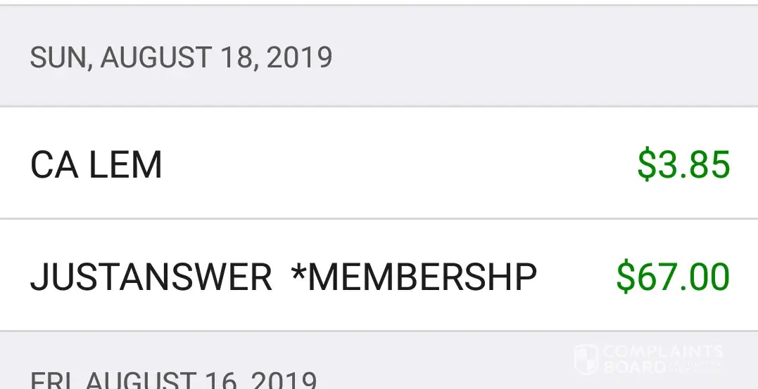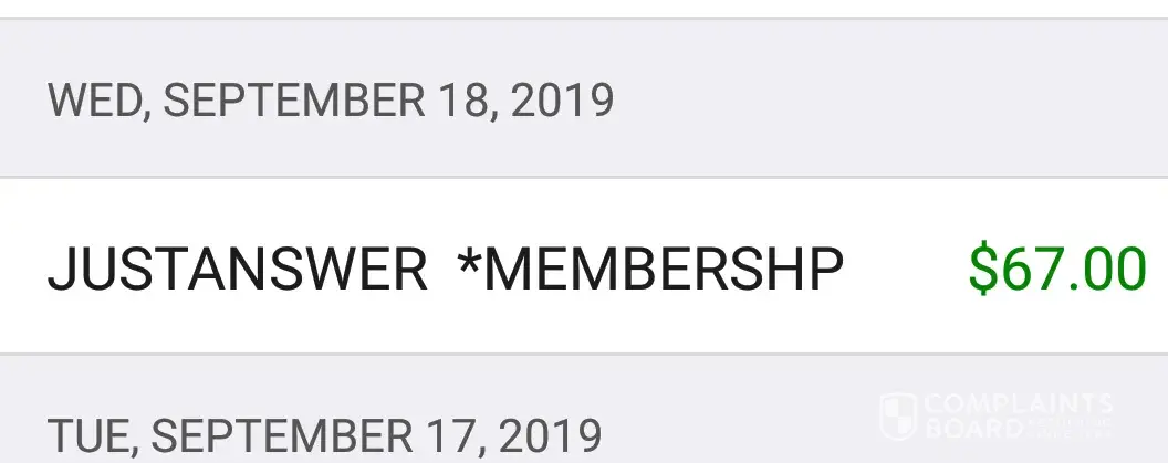 On August 8 2019 I signed up for a $5.00 charge for JustAnswer requesting information regarding a legal matter. My question was answered and I was partly satisfied. August 11 2019 they charged my Visa $47.00, August 18, 2019 $67.00, September 18, 2019 another $67.00. I NEVER APPROVED A MEMBERSHIP. They've OVERCHARGED me $181.00 for a $5.00 stupid answer. I want to be reimbursed ASAP. I went to they're website to complain but I HAVE TO PAY $5.00 to complain and request a reimbursement. Thus is so WRONG. How do I go about getting them to reimburse me and to STOP them from stealing.