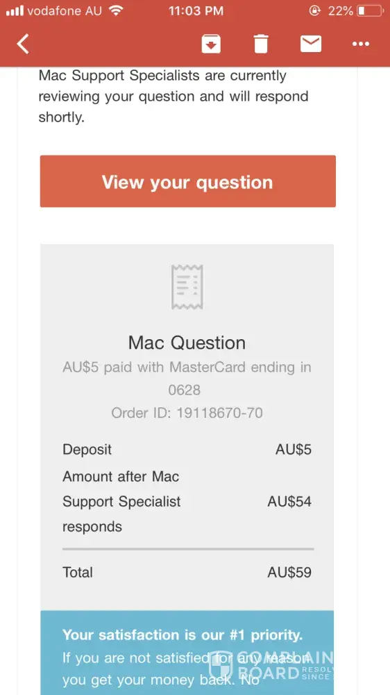The answer to my question, was not acceptable and I told you of this. You still took the.initial payment and.have.continued to steal more money.out of my.account. I did not state at any time Was I happy with the.stupid answer I received and the ageement does state that the money would.come out of my account if the answer was satisfactory and it was not I want a full.refund for the initial.payment and the following months you have.taken money out of my account. To say that this is a scam is an understatement it is daylight robbery. You have no record of my email address yet you still take.money every month