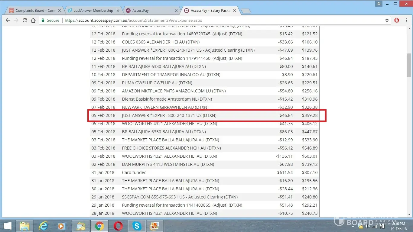 Read full complaint and 7 commentsjustanswer deceptively adding unadvertised charges (aud$78.28 and $97.85 ten days after I paid the advertised $5.15 fee)