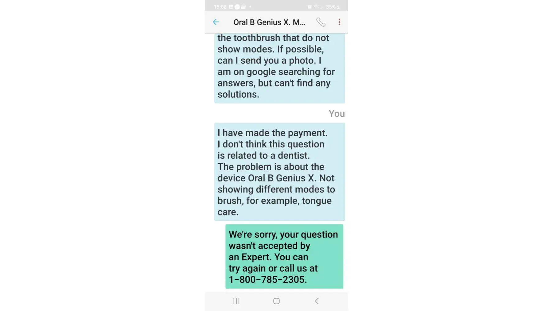 I sought advice regarding my Oral B Braun Geniux X electric toothbrush.