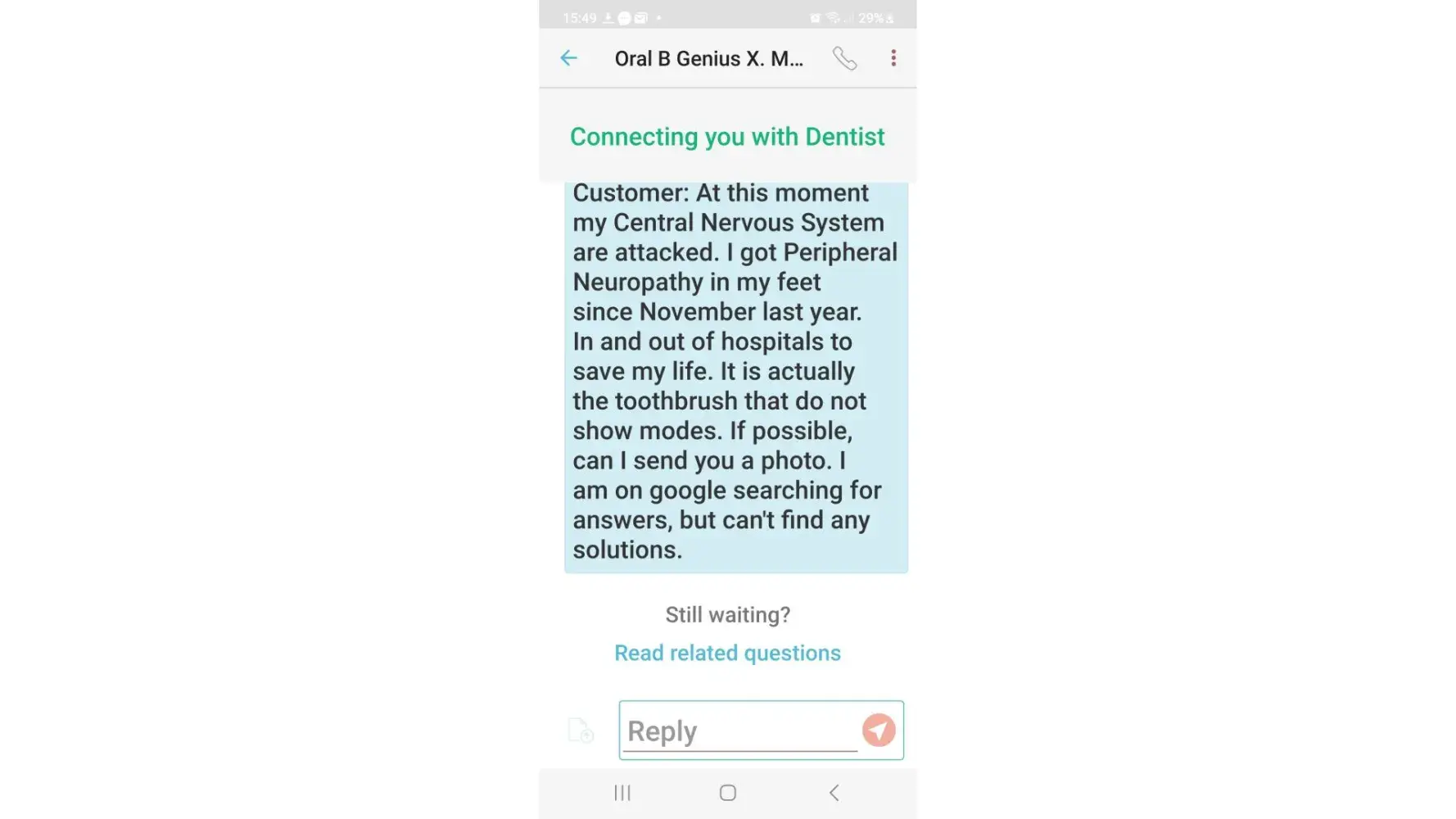 All I needed was help with a toothbrush. It may seem insignificant, but it is important to me as I have lost all my teeth due to Lupus.