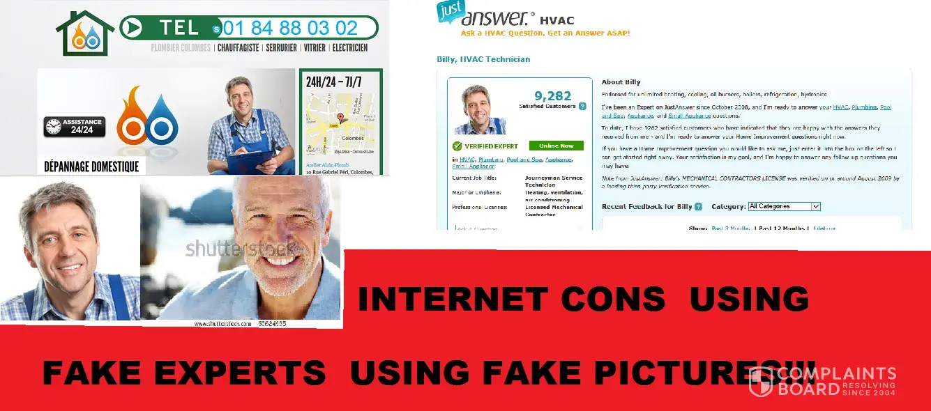 they use fake stock photos as the "experts" BillyJr aka Billy1961 and phil etc 2 of the most prolific, however Billy 1961 the HVAC mentor is feared among all the experts, for some reason Billy1961 has great pull with the admin at JustAnswer.com / Pearl.com and I suspect I know why! Allow me to demonstrate my findings...