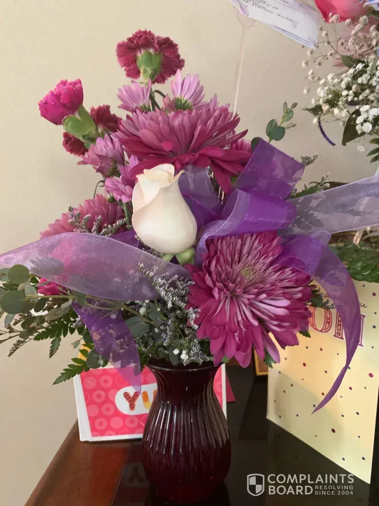 1. The birthday flowers I order were not delivered on the recieptants birthday. They were delivered the next day after multiple phone conversations with your unprofessional staff and managers.