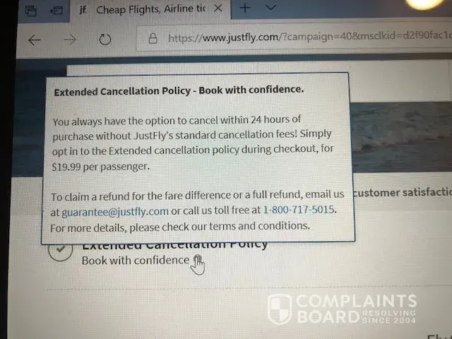 I purchased a ticket on the website Just Fly at [protected] as well as an extended policy at CSA which is listed on their website. On the homepage, the airline stated that there is a no hassle cancellation within 24 hours. I called back five times only to be left on hold for more than thirty minutes each time. I finally reached a representative after I pressed the telephone option to make a new reservation who transferred me to Customer Service. I told the representative I wanted to cancel my flight, but she told me I could not because I made changes to the flight. The site does not specify that at all. I was still within my twenty-fours. After going back and forth with the Customer Service, she told me that part of my flight was eligible for a refund. She was willing to grant me a refund for $274.90 for the outbound flight within two to ten days. The inbound flight was eligible for a flight credit of $465.21 only on American. I told her since I could not get my money back; I would like to book a one-way ticket for which she quoted two rates for less than $300 on Delta Airlines. I inquired as to why you are quoting me rates on Delta if you are only allowing me to fly on American. She then said she made a mistake and since that my return flight ticket price must be equal or greater than $465.21; therefore, I could not book a one-way flight. I told her it didn't matter just book me a flight if that is the only option you are giving me. I finally got frustrated, told the representative that I saw cheaper flights on your website with fewer connections so just rebook my entire trip. At which point, she just so she put me on hold. I held the line from before midnight until after 3 am with just music playing in the background. I finally hung up, called back again, followed the prompts, and held on another twenty-one minutes with no answer on the other end. I called back this morning around 9 am and was told I have passed the twenty-four hours, even though, I had been attempting to resolve this issue well before my twenty-four hours. The Just Fly phone representative told me to call the travel insurance I purchased from CSA at [protected]. I called CSA and spoke with a representative who told me that I had no recourse for getting my money back or changing my flights because I did not meet their criteria. Just Fly uses misleading claims by placing on their webpage that there are no fees and hassles to cancel your flight within twenty-four hours. They have poor business practices by keeping you holding on the line for hours, in hopes, you will hang up to avoid you contacting their Customer Service to make any changes. They have ripped me off and overcharged me with no way of getting my money back. I now have to take an overpriced trip because I have no way of getting my money back.