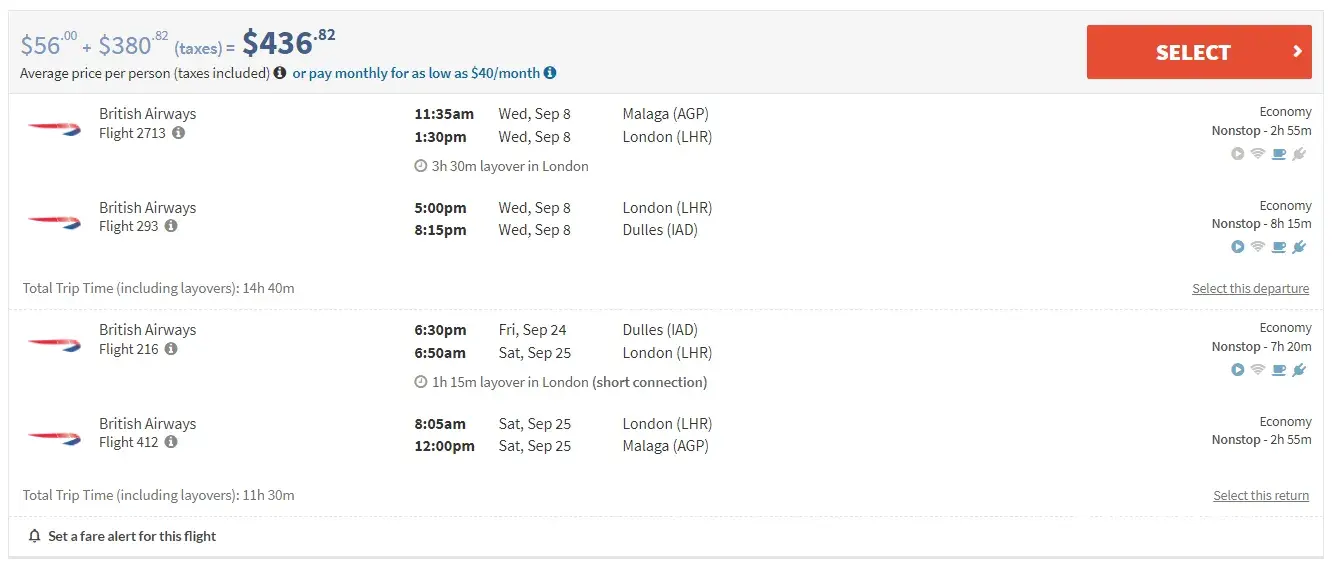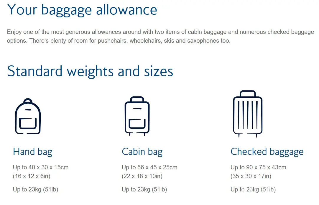 I booked 2 "Economy Class" flight from Malaga, Spain to Washington Dulles on British Airways for myself and my wife. All information on JustFly website indicated that the tickets were "Economy Class" which meant each traveler was entitled to take one piece of hand luggage and one piece of suitcase during both legs of the journey.