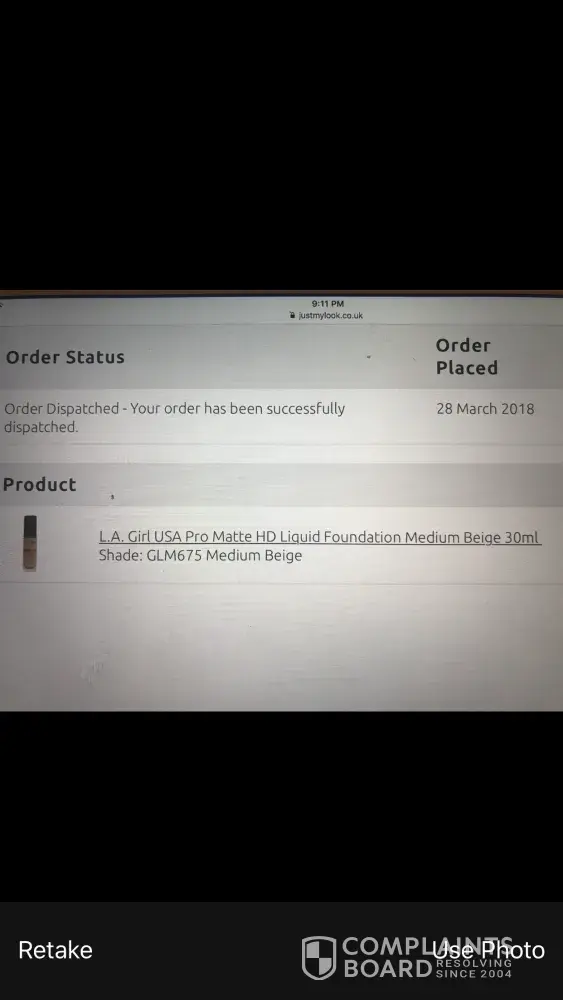 I honestly am so disappointed at the service I received from justmylook. As can be seen in the pictures attached, I placed an order for the L.A Girl pro matte foundation in colour Medium beige, however when my order came in this afternoon I received colour Beige which is not even close to my skin tone.