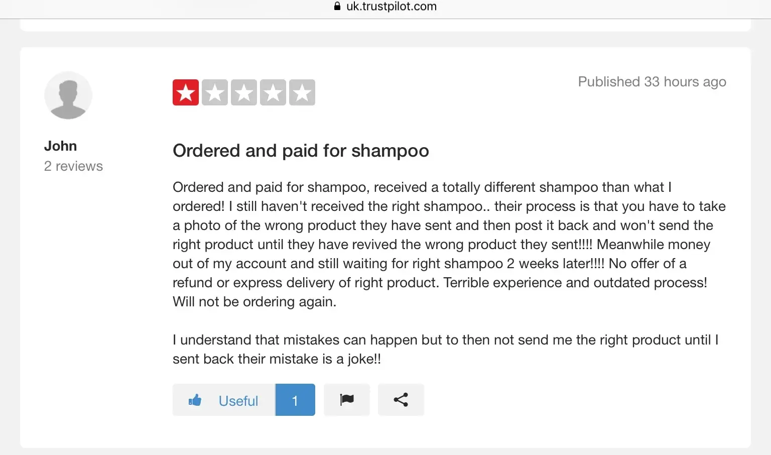I have also noticed that this people are out to put their unfortunate customers out of pocket by sending the wrong products to them. I just saw a review now on trustpilot of someone who had a similar experience with them. This can be seen in the picture attached as well.