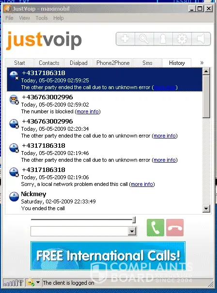 I have my justvoip account and an account credit of 10.02 euro and 353 free days left. But when I try to make a call, it says, "The other party ended the call due to an unknown error." I sent e-mail complaint to the Justvoip service team, but the error is not corrected. It smells bad.