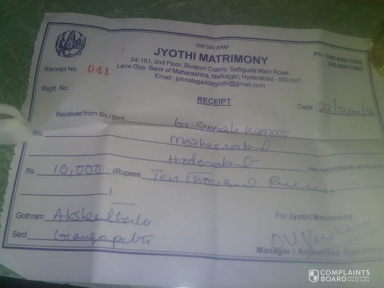 Jyothi Matrimony complaints: history and resolution overview