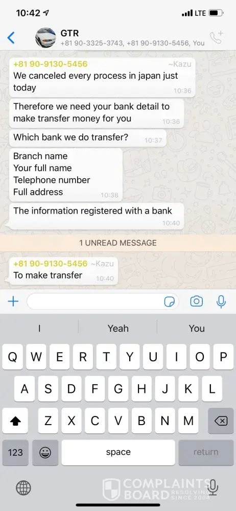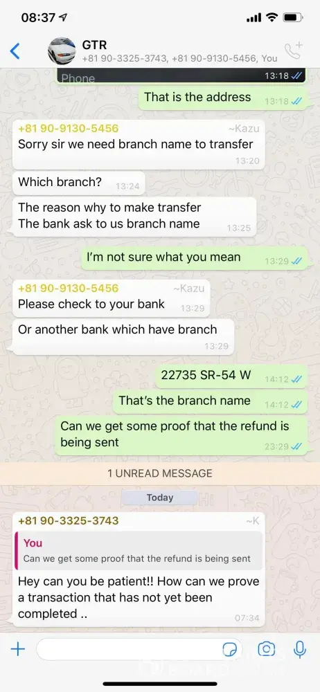 We were in conversations with them in regards to purchasing a vehicle. They sent us a pro forma invoice And we immediately wired them the funds. Three weeks have now gone by and we have not received any paperwork or any proof that the car has been sold to us or had its process started to be sent to us. They then messaged us randomly telling us that they are shutting the business down in Japan and refunding us our money. They have been telling us that for two weeks now and every time we talk to them they give us an excuse on why they have not sent the money yet. I need this rectified immediately or we will take full force action and we immediately wired them the funds. Three weeks have now gone by and we have not received any paperwork or any proof that the car has been sold to us or had its process started to be sent to us. They then messaged us randomly telling us that they are shutting their business down in Japan and refunding us our money. They have been telling us that for two weeks now and every time we talk to them they give us an excuse on why they have not sent the money yet. I need this rectified immediately or we will take full force action. [protected]@teamarmored.com CEO and owner.