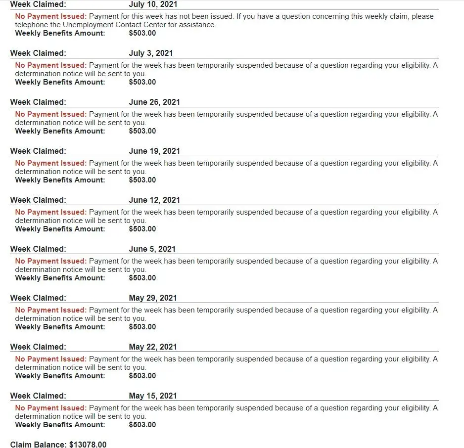I have been fighting since mid Nov 2020 to collect unemployment, I have supplied all information requested but still nothing. I had a fraud hold which took 3 days to resolve because the website was down. Then informed on phone I needed to file a form which I did over 2 weeks ago but got the same form in the mail. Each week claimed shows a determination has been sent but never received anything. I have not received a paycheck since Jan 15th 2021 which at the time I was under a medical leave. I am getting no response or help with this issue. My employer let me go 1st of Aug because I was on medical leave to long. Again have not received any paycheck since Jan. Why can't the state take care of residents that are truly unemployed and in need of assistance !?!?!?!?!?