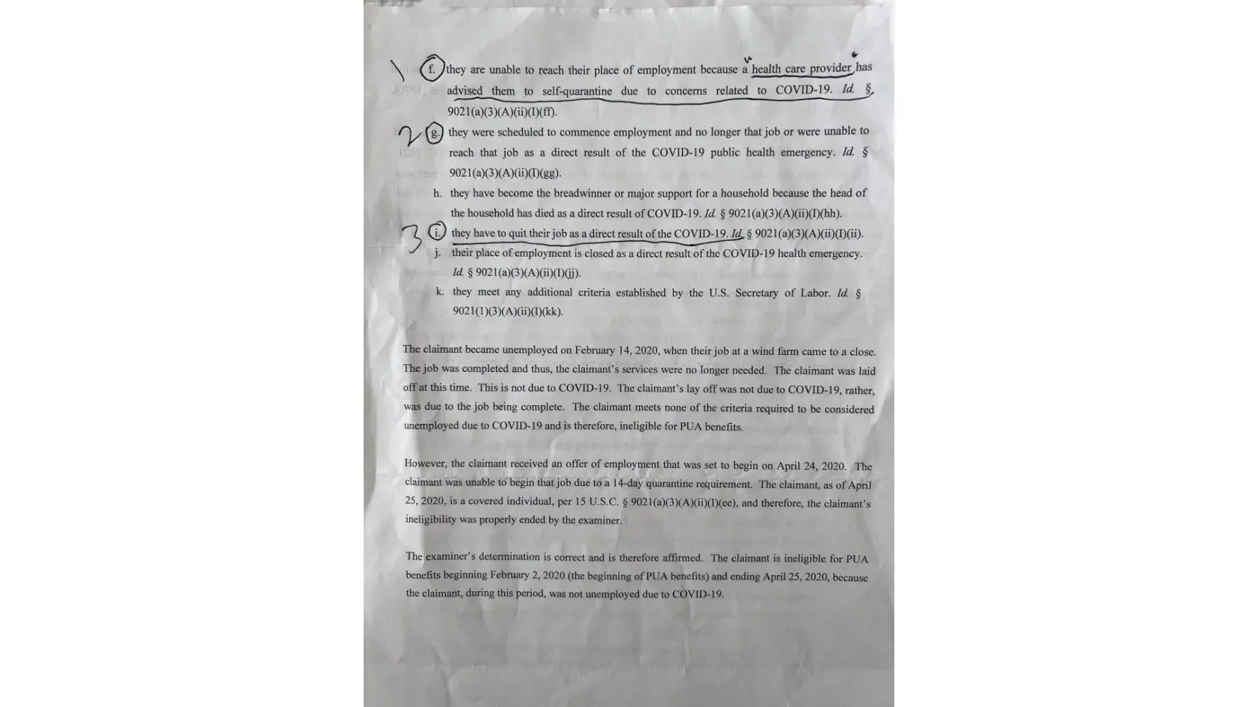 My claim came to a complete stop all because P.Gould #197 decides to take the agency’s own initiative and disregard her own rules or laws for the state she works for, being ignorant to the rules and or laws should be consequences up to termination, because P.Gould did not comply with Kansas rules and or laws cost me shame, dept, suffering, homeless nights, family arguments, just a chaotic nightmare, the countless hours trying to get threw here hoping for a actual kdol specialist to receive my call. All the documents and paperwork to fill out send in and nobody acknowledges the documents i’m returning right back, same ones over and over, like their just playing games. For the record i’m from California even tho I did not work out of the state of Kansas, the company I was going to start a job for IEA was in Thyer, Kansas, my initial claim is from Moran, Kansas. Here’s one failed situation many eyes missed and put me in a wreck. Prior to start work in Thyer, Kansas since I came from a Hotspot in California I was unable to reach my place of employment because a health care provider has advised me to self-quarantine for 14 days due to concerns to Covid-19: