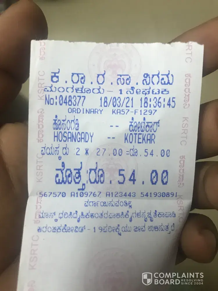 So here I am requesting you that please take the necessary action against them because of this type of staff it is bad name and also loss to KSRTC.