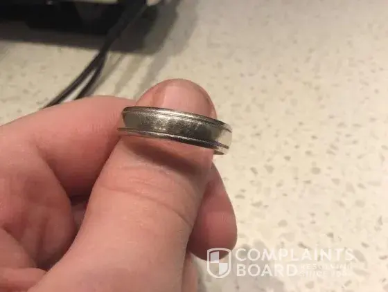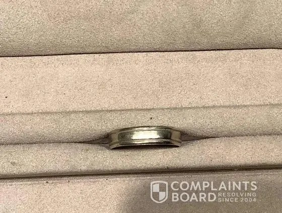 She then told us that there had been issues with past management in terms of keeping up with paperwork, but that she was taking care of that and we had nothing to worry about. We had always enjoyed our visits with the previous manager, who treated us very well (as one would expect in a retail environment.) I told my husband that he should have his band re-plated and brushed. He took it off and handed it to Kathy, noting that it was out of round and asking if it could be re-rounded at the shop as well. We had had it plated, brushed and rounded in March 2021, so assumed it was a routine request. Kathy placed the ring on a steel sizing guide and began to tap on it with a small wooden mallet. After doing that for a minute or two, she filled out the paperwork to send it in.