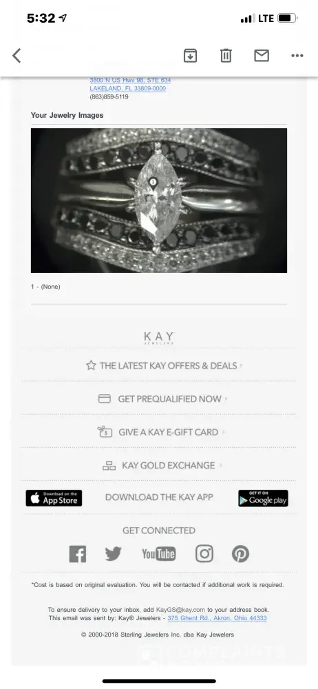 Kay Jewelers emailskayccs@jewels.com100%Confidence score: 100%Support