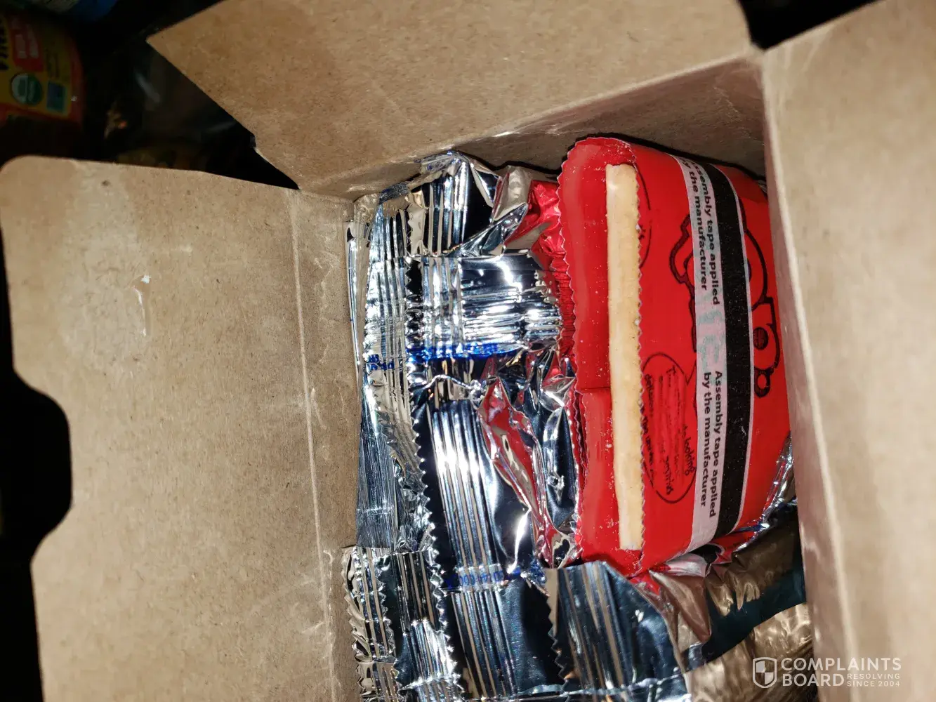 Desired outcome: I would just like some sort of apology token for my product being improperly packaged, my time, my gas to take the back to the store. Free Kellogg gift certificate or something.