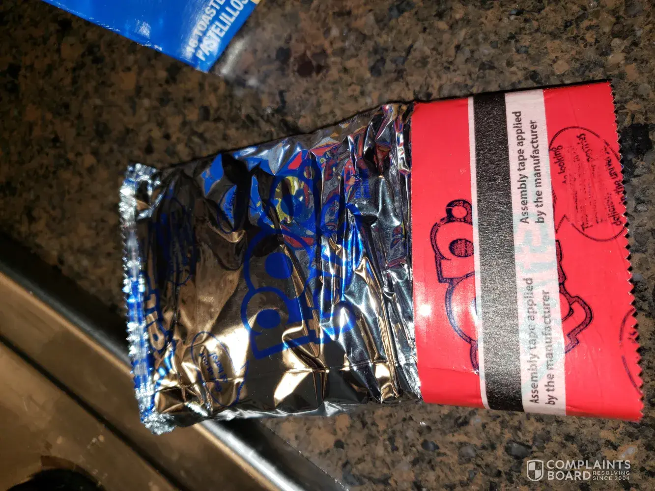 My son said it was my wake up for not turning on the lights, but I expect everything to be in its place, including my food. I just ask that you be more mindful of your product. A bag under half an ounce may not cause serious damage to an adult but could be fatal with a child knowing how children can be.