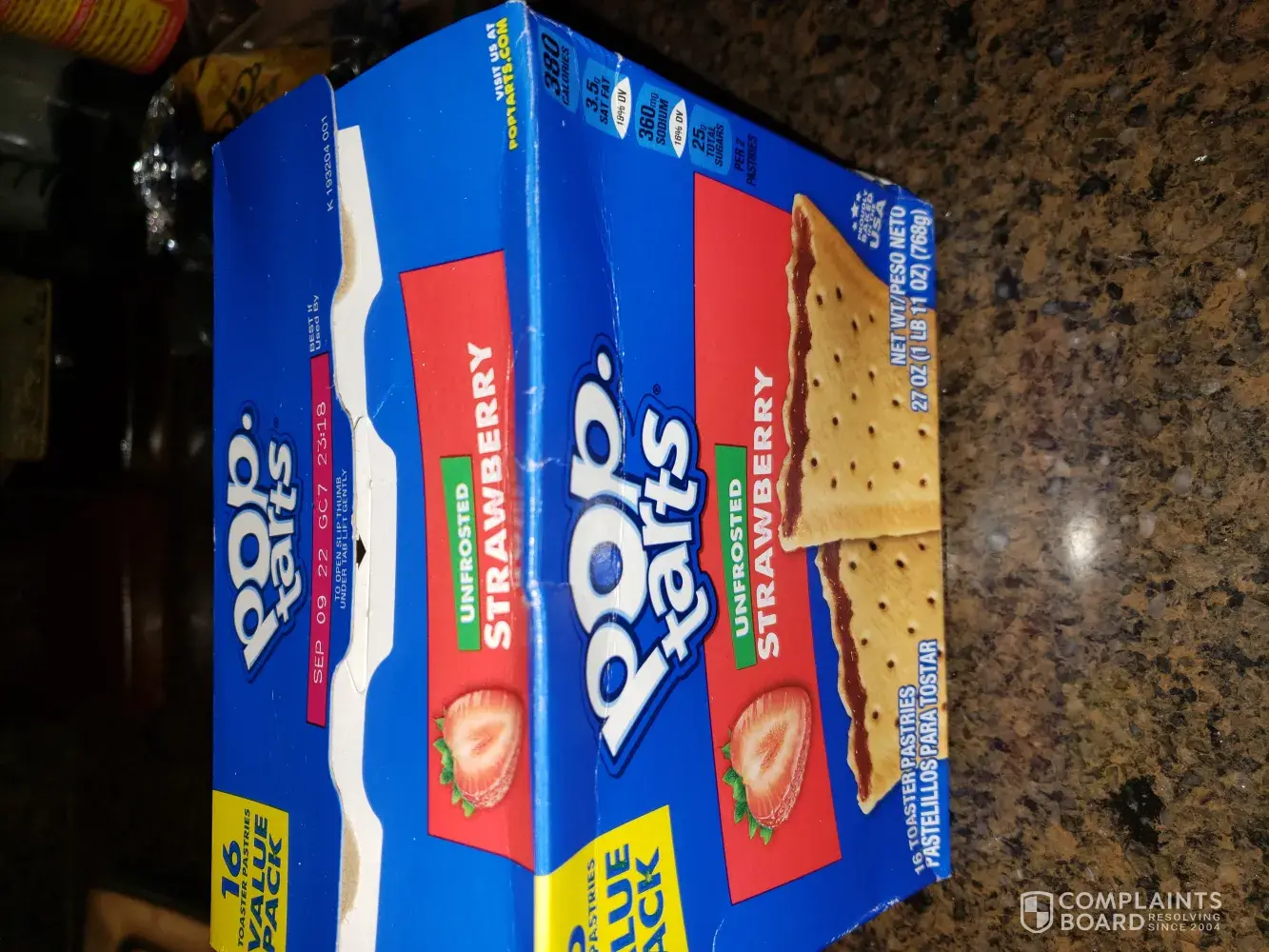 The entire box was filled with the same disappointment as that first package. The disappointment enlarged as I began to notice that my children were leaving behind the unfrosted and half eaten packages of pop tarts in the box. Apparently they don't enjoy the unfrosted one's as much as I. Growing up in a low-income family where food wasn't I was easy to abundant with six siblings and one single father raising us all on his own, it really upsets me to see food being waisted... I understand what my father was saying now that I am the single parent trying to raise my children with a low income household. The fact of the matter is is that I went into Walmart and bought one of those giant boxes that is over $10 have your Kellogg's frosted strawberry Pop-Tarts, you know the one that comes with like 48 in a box.. well anywho I surely hope that Kellogg's can keep my family as regular customers by acknowledging the misfortune that has happened and by correcting the situation as best as they can. I look forward to hearing from you but until I do my family is boycotting the Kellogg's brand until they prove their worth.