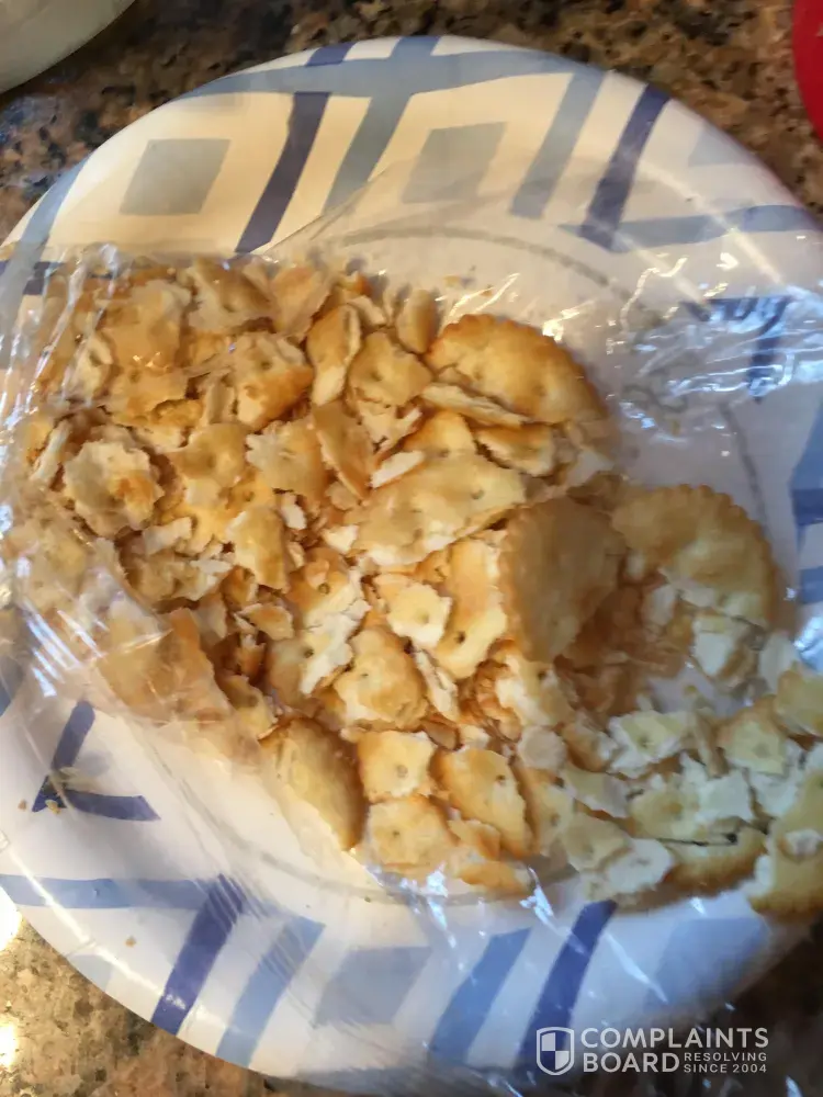 Our family has for years bought your Town House Crackers and have been very satisfied UNTIL now. I have bought 4 boxes of your family size Town House original crackers for our and every single box we have bought has had crackers that crumble the minute you take them out of the box. As you will see in the pictures they are already crumbling in the packages. Our grandson has autism and is very picky about what he eats. Your crackers are one he loves but now we get tears because they are just crumbs. I am so sick of buying a box and every single box is the same. I don't know whether it's the store or the way you package them but you need to be ashamed and Walmart needs to be ashamed to stock products like this on their shelves. Yes, I have complained. I want a decent product and I don't care how you get it here.