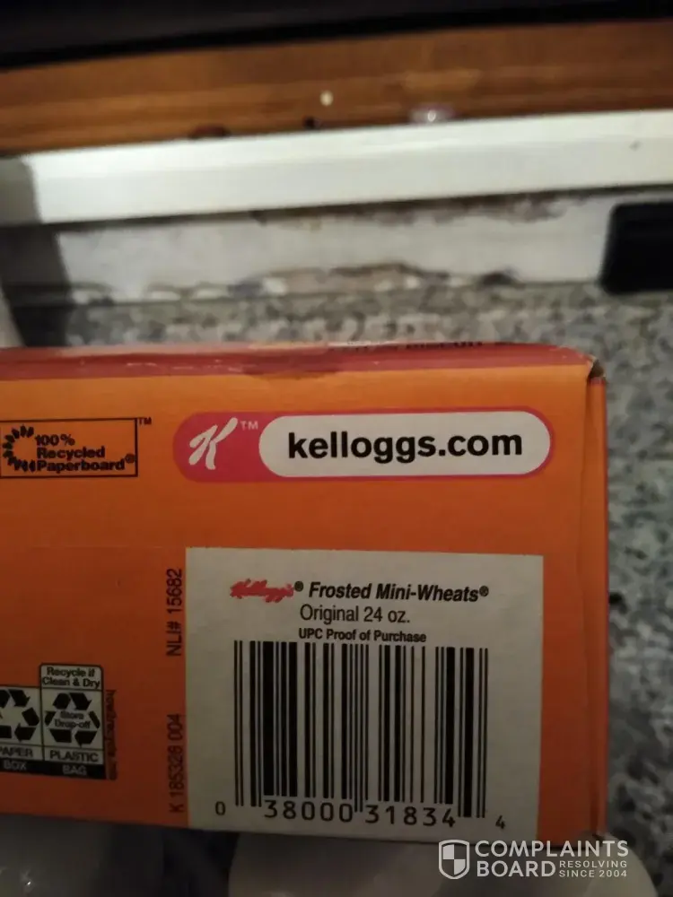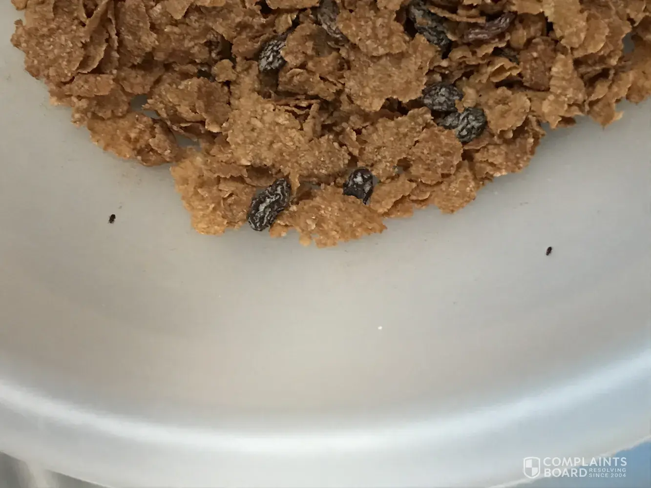 Opened a brand new box yesterday 8/18/20 morning and poured myself a bowl of raisin bran. Put my milk on and began eating after a few minutes started noticing bugs floating and moving in my bowl, needless to say not happy about this. I understand some bugs will happen, but looks like kelloggs has a big problem. I thought about posting a pic on social media but did not so here is my pic. The box being unopened as well as inner bag being well sealed makes me wonder if you have a problem in manufacturing or supply.