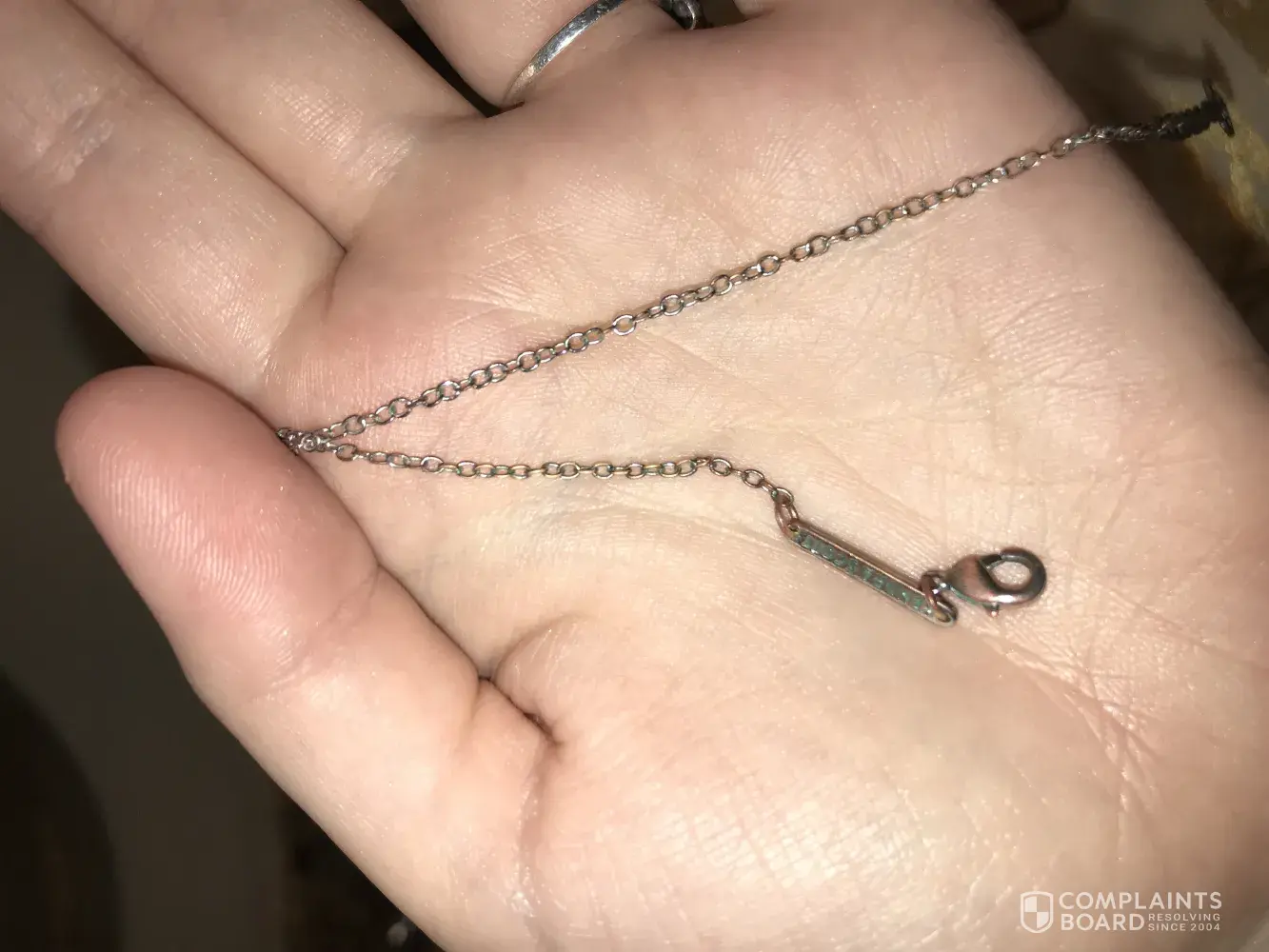 I recieved a necklace about a month ago as a gift & i loved it so much and wanted to wear it everyday because it means a lot that it was given to me as a gift but only a few weeks in the chain has begun to rust & turns my neck green even though i take it off before going in water. For the cost of this necklace it's disappointing that the quality of the product isn't better