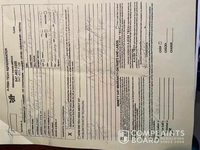 Desired outcome: I would like my money back on a defective refrigerator + the trouble shooting costs.
