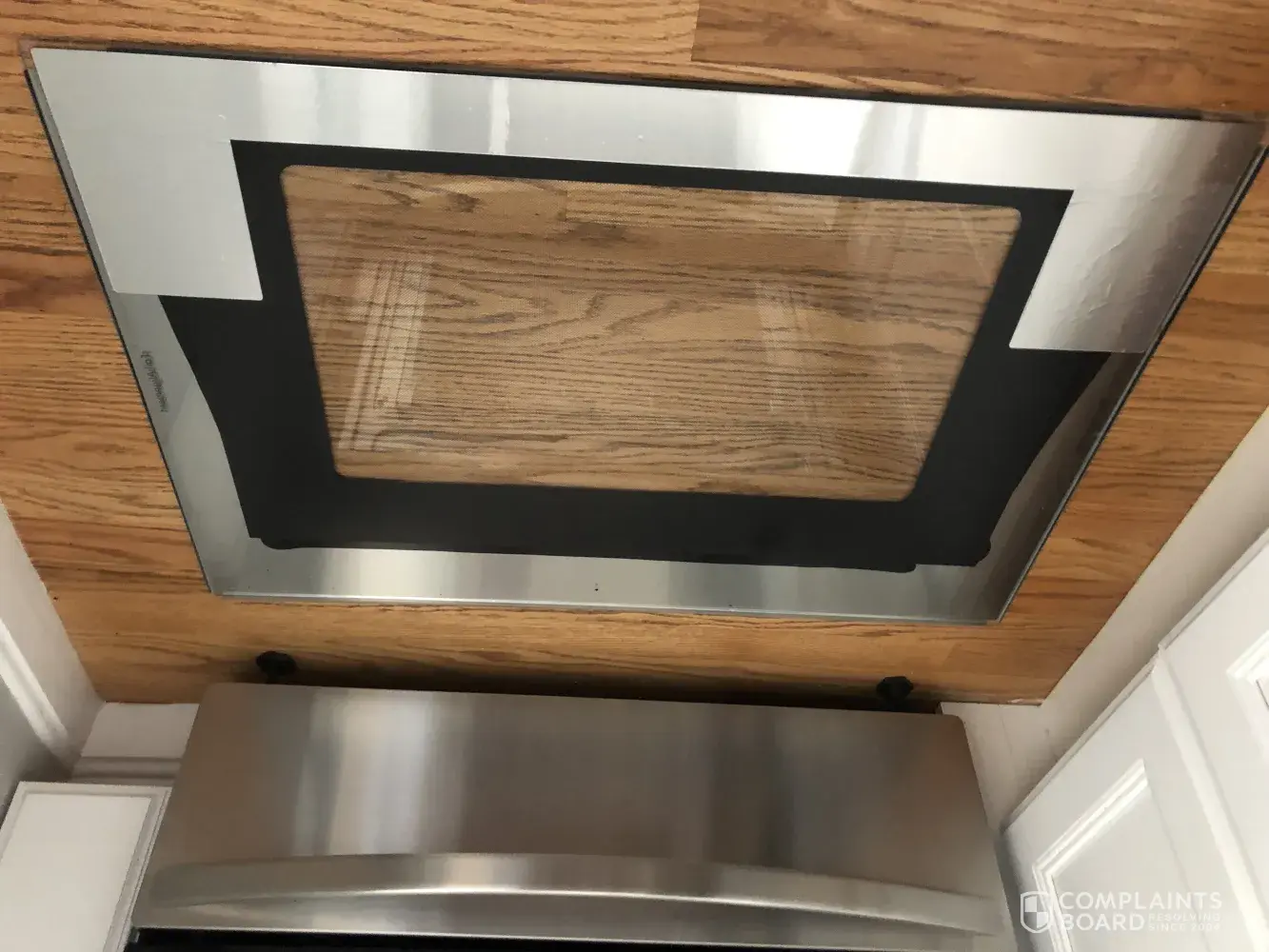 My oven glass front door fell off out of the blue today while cooking I had my grandchildren here and thank god they were not near it when it happened especially the baby crawling or we would have a law suit I read about this problem online and there are hundreds of people that had this happen that said they reported this and there should be a recall on this problem