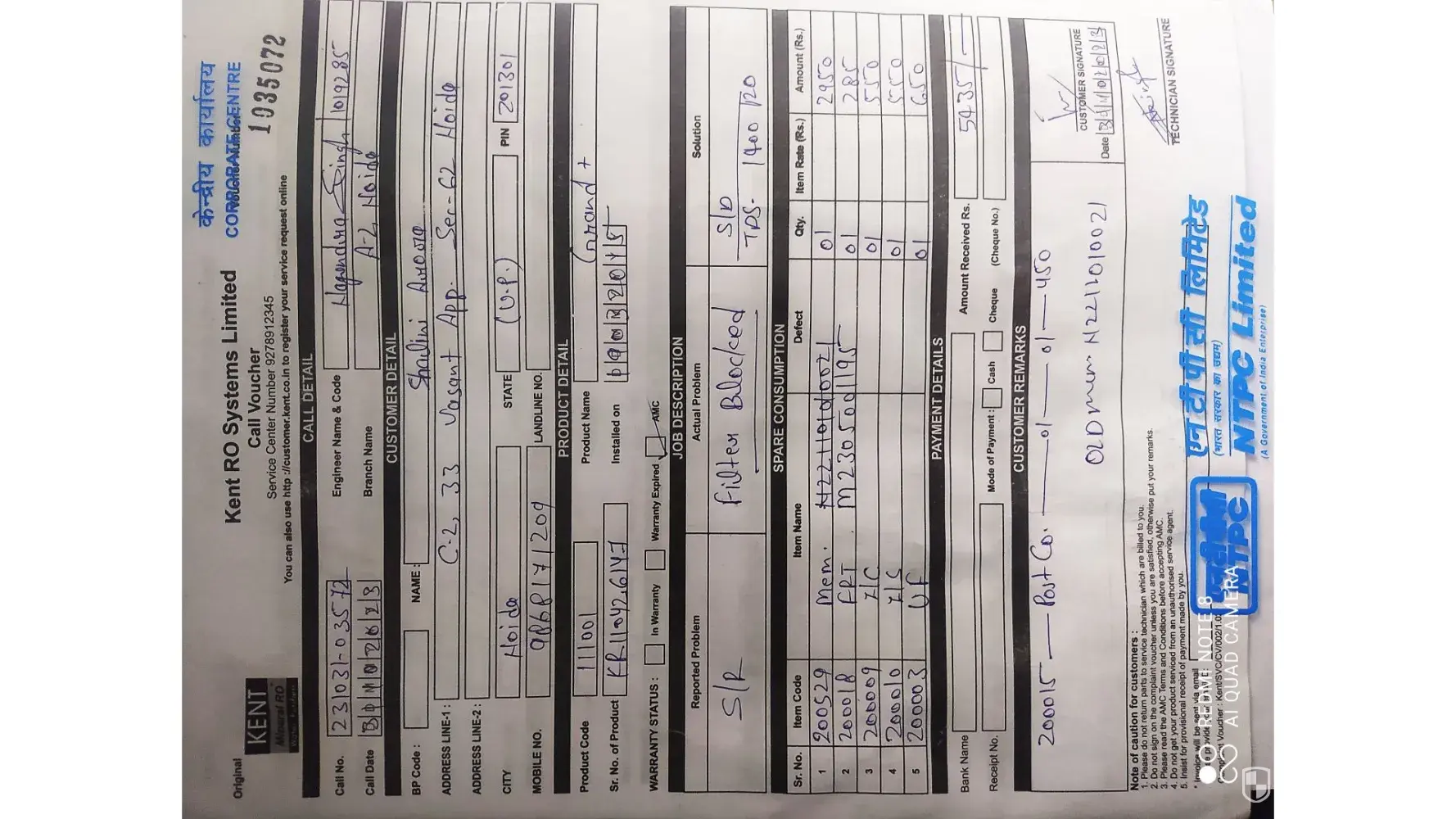 Few days back, the filter etc. of the system were changed by a technician of the Company on our request and the required amount was paid to him. Till that time it was working properly.