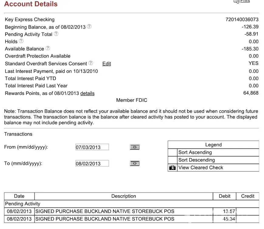 I never opened an account with Key Bank instead I had an account with First Niagara there was never an issue however there are nothing but issues at this point . When I make a purchase and or pay a bill and review my account online it can take up to three days for those charges to be processed throughout that time I am unable to receive an accurate statement of my balance .