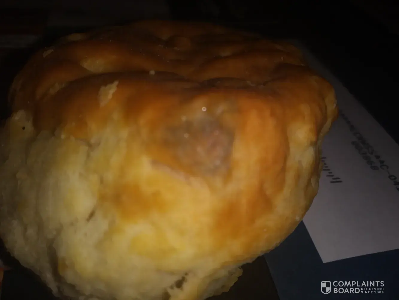 Make a long story short. Bought three fill up boxes two days ago.. One of the Biscuits had mold green mold and was hard as a rock. Second meal breast was red inside uncooked.. Returned both .. The Manager Angel was ruined.. Told me sometimes the Biscuits it contaminated. From the paper on top.. As if no big deal.. No apology. I do not live close bye.. I do not appreciate the attitude. As if I did something wrong.. He said he was going to contact corporate. But he did not take my information..I have my pictures..