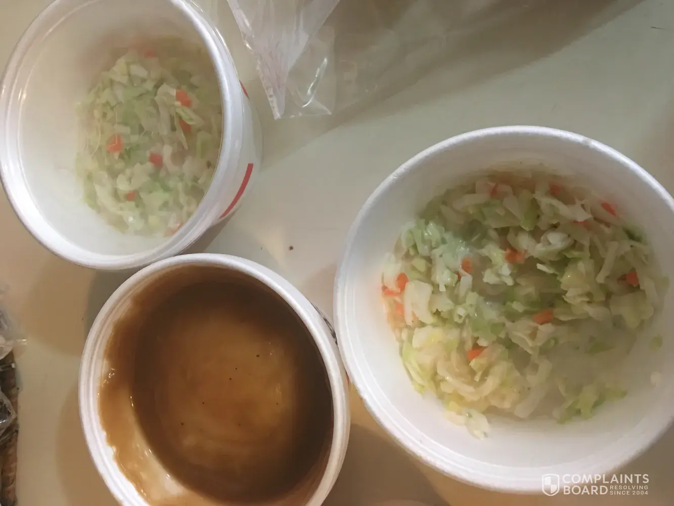 Look at this disgusting [censor] I brought home to eat. The bottom of the boxes was covered in grease and sediment the side dishes weren't even half full and the chicken tastes like [censor] and they thru pickles on top of our chicken. I am so pissed. I called and gave them hell. I bet they change there grease after this. I never had so much disappointment from this franchise. This is the kfc in Brighton colorado pics follow