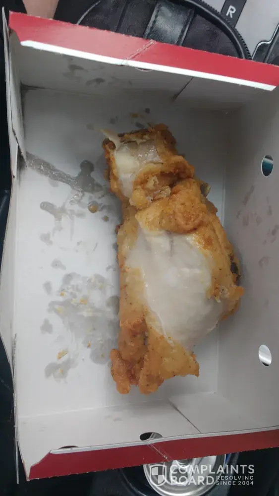 I have been a weekly customer of the Belleville KFC since it has opened and have never been so disappointed in produce and service...For the past three weeks I have got poor quality chicken...No ice in my drink and have waited up to half an hour for a piece of chicken and a drink...Here are some pictures attacked one even had the skin torn off...I am not normally a complainer but this is an ongoing occurrence and have heard numerous complaints about it from coworkers as well...