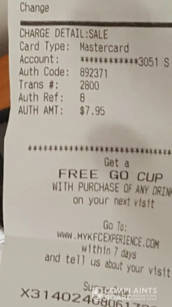 My daughter and I had lunch at a KFC restaurant today and the service was horrible, which is very surprising since we often eat at this location and normally have really good service. Today, however, it appeared that the manager was not there and the employee working the register had the worst attitude I have encountered in any restaurant. She did not greet us, just walked to the register and gave us a look like we were wasting her time. We ordered the buffet and there was NO chicken or biscuits. The other items were not fresh as they usually are either. When I asked for chicken she took about 5 minutes to bring out 2 drumsticks and 2 thighs, no tongs were there and it took her even longer to bring them. Never said a word to either of us just walked off with no apology or anything. When she gave us our receipts the she gave us did not have the survey information on them, she threw those away. My receipt shows the ticket #3651, Date 2017-08-09, time 11:25AM and a code that I tried to use for the survey but it didn't work, E121019 3 191 3651. It also shows the cashier's name, Brie. We have eaten at this restaurant often but I felt like I needed to contact you to express my disappointment with the service we received today. Hopefully, this will not be the case in the future. I will be sure to ask for the receipt with the survey information next time.