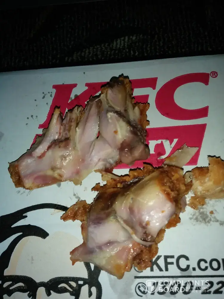 I am a 43 year old grown man and have been eating KFC my whole life and never expected anything ever like this to happen at KFC, Will attach picture of bone and try to get a picture of the hole in the back of my mouth/throat that bled a bit because of the sharp bone. Please advise