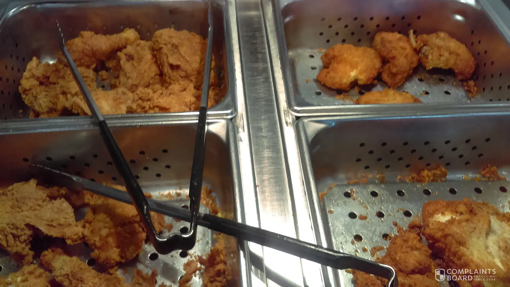 The date of my last visit was July 24th and I was picking up dinner for the evening. Upon entering the restaurant I found the floors with food products on it in several areas around the order counter. It took a bit of time to get someone to take my order also (over 5 minutes) and then when I was asked what sides I wanted I went through 3 of the most popular sides which I was told they were out of (corn on the cob, mac & cheese, and baked beans), and had to settle for ones they had left. I waited an additional 20 mins for my order and was told I was given 2 extra biscuits for my trouble - an extra peice of chicken or another side would have made for a happier customer.