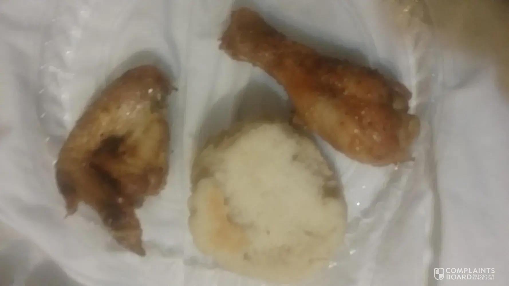 The biscuit was cold and hard. The chicken strips were hard and rubbery. Also green beans and macaroni and cheese(which tasted bland) were my side items but there was no fork provided. The female who took my payment at the drive thru window was not rude but was not friendly either, and did not greet me. She did not confirm my total once I got ready to pay she just took the cash from my hand. If I was not on my lunch break and actually had the time, I would've gone back to complain to the manager. I've had wayyy better from KFC in the past. I hate spending money and not satisfied with the food and/or service.