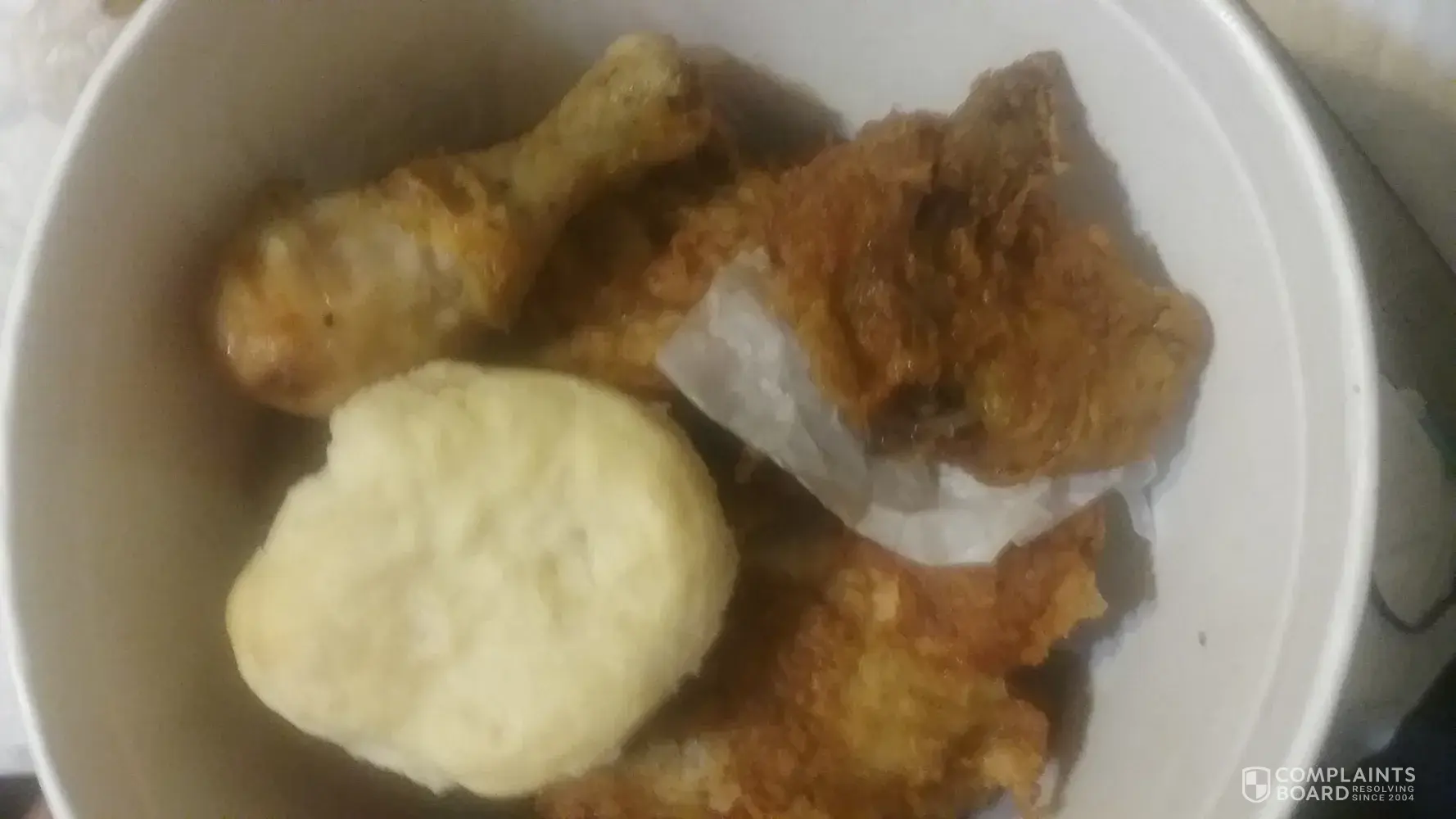 for $20.99 to go when i opened OMG the biscuits are undercooked, the chicken look like baby chicken, the legs are smaller than biscuits? the container it's half full I have pictures to confirm that. conclusion I lost my appetizer I don't touch the rest I'm Scared the test