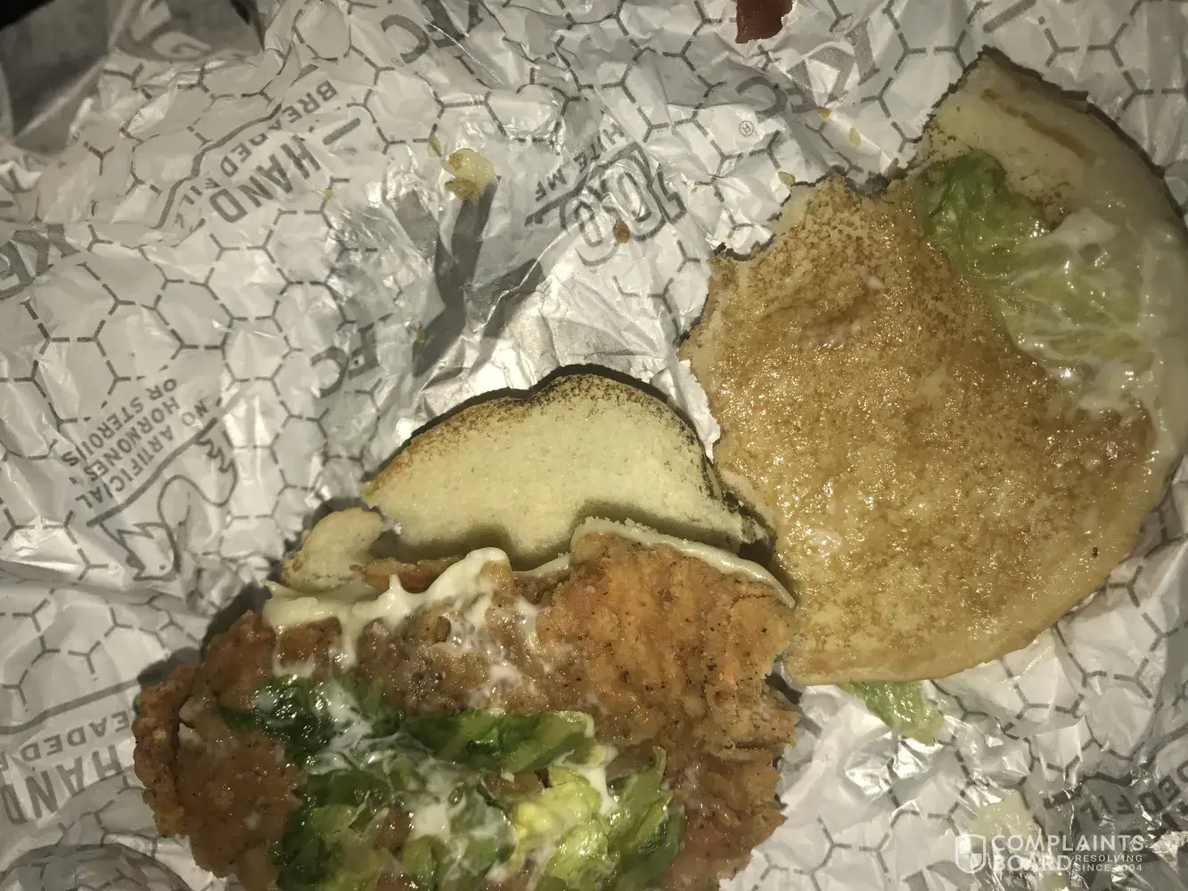 Home and started eating my spicy chicken sandwhich and potato wedges. About four bites into my sandwhich I realized that my bread was moldy. I am absolutely disgusted that I ate moldy bread. Employees should know better to pay attention. I could get very sick. It's a waste of