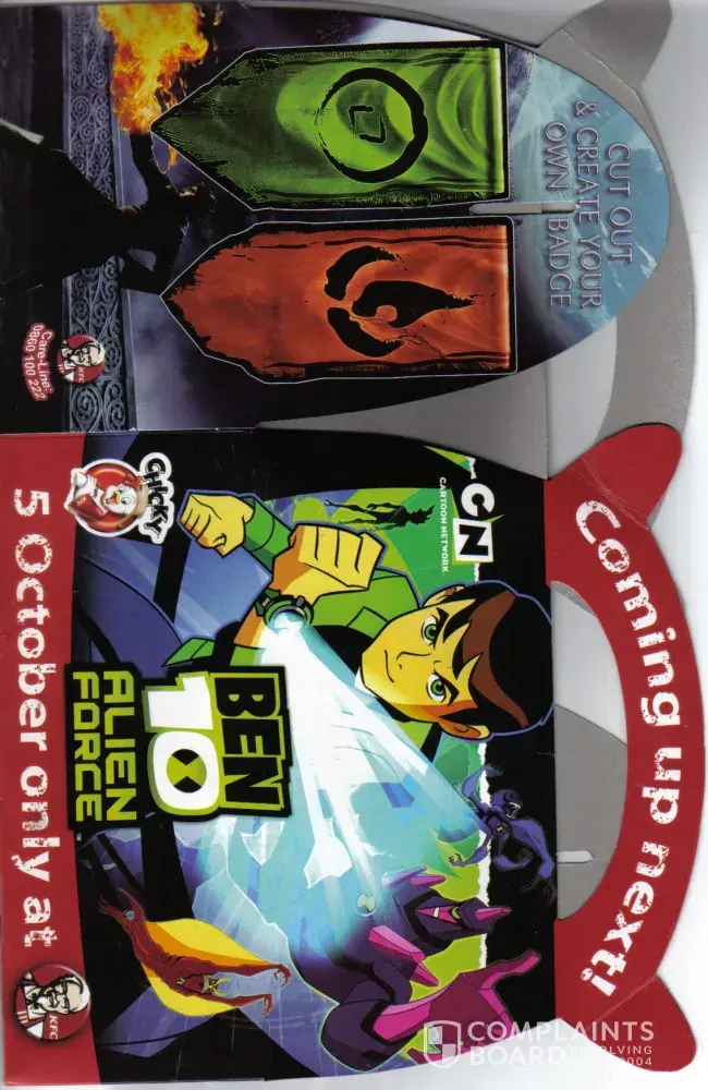 So to my understanding we and other clients have been cheated on in supplying the public old and incorrect promotional products, i'm attaching the asaid photo's of the product that was given and would like the correct product that is supposedly to be with the chicky treat happy box. You now have one very unhappy 5 year old boy and also many other kids
