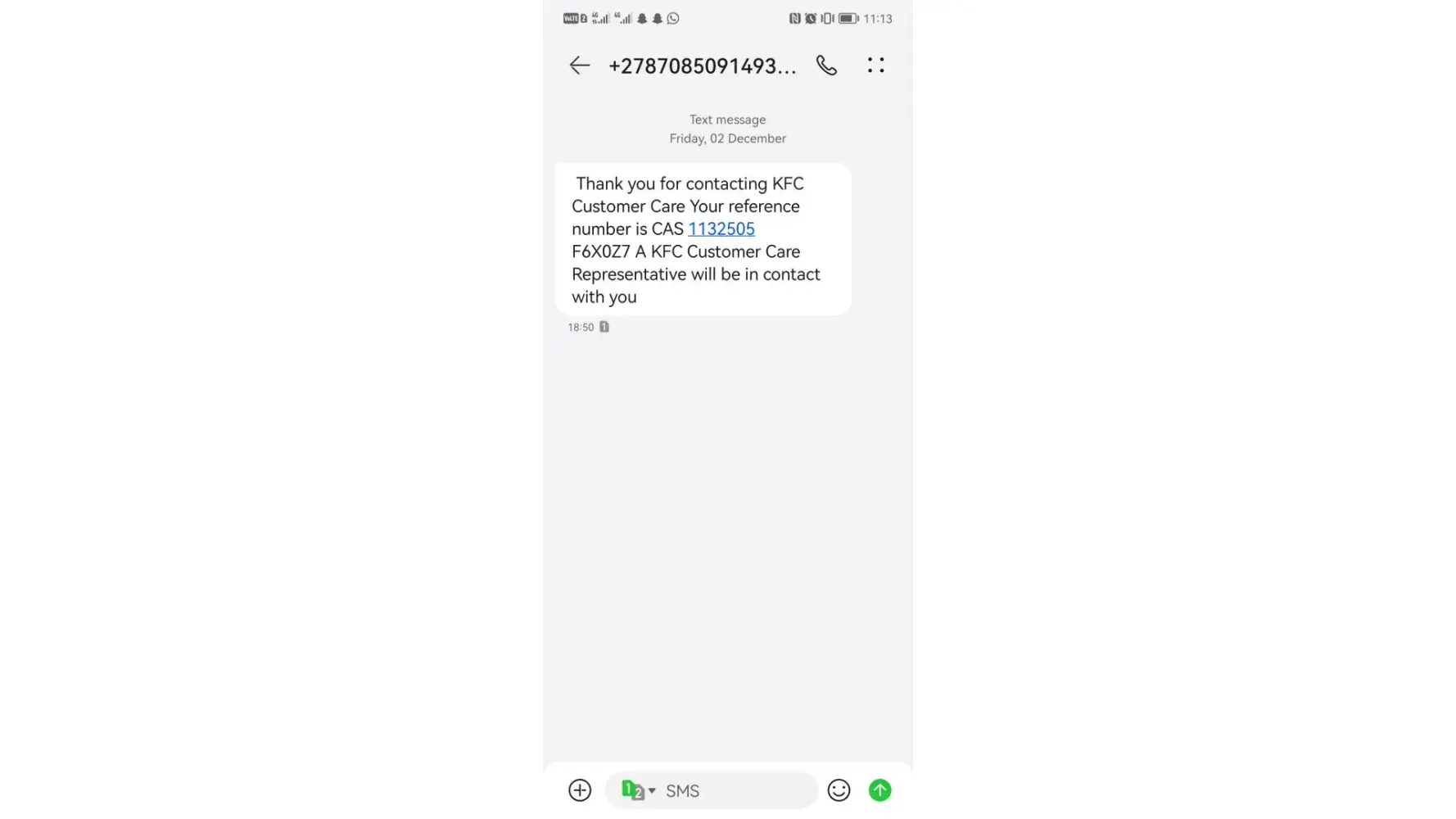 it has been an hour since the order being placed , we haven't received any correspondence from the store. The order was placed this morning @11:29 it is now 12;43 now word from the driver. Called the store (KFC Denlyn) multiple times , then contacted the customer care (deliveries). I spoke to Faith who failed to resolve this incident . It is totally unacceptable the service she and Denlyn KFC have provided. I requested a case number of which (Faith) failed to provide.