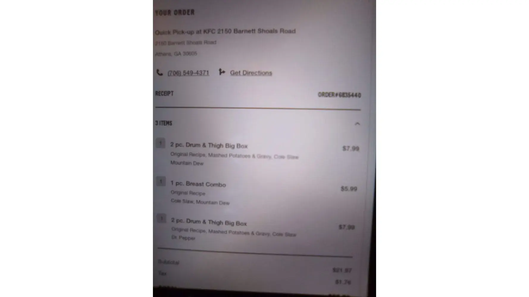KFC Wrong order through Door dash service