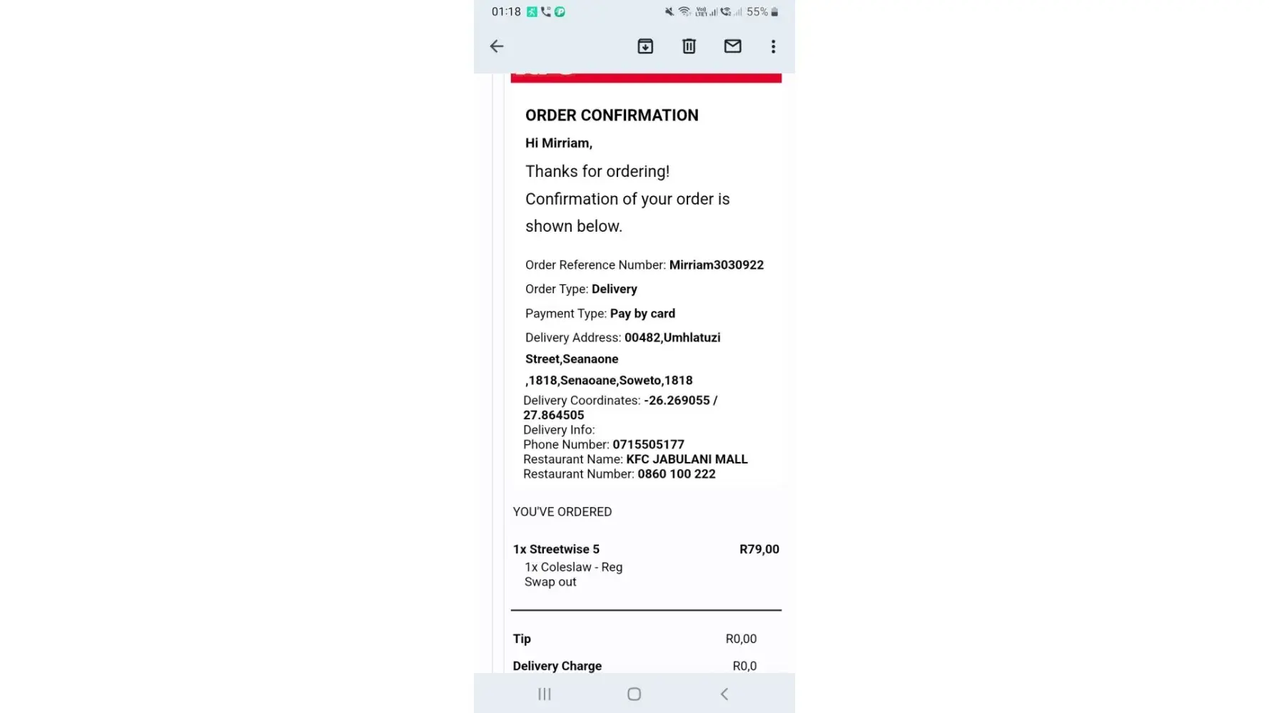 I got the sms saying the delivery team is on its way I waited and nothing after few seconds I got another sms says delivered but nothing I called them tell to inform what hppnd. they gv me voucher.